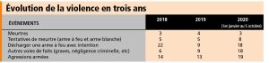 L’an dernier, une baisse notable avait été remarquée avec 40 crimes de cette nature, alors que depuis le 1er janvier, on n’enregistre déjà pas moins de 66 événements d’une grande violence (voir tableau). Il s’agit d’une hausse de 62,5 % pour ce type d’événements précis, et non l’ensemble des crimes, en un an sur l’île Jésus.