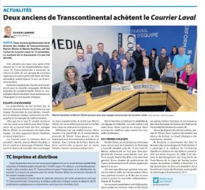 Depuis le 15 novembre 2017, le Courrier Laval est la propriété de 2M.Média. Ses dirigeants et fondateurs, Martin Olivier et Martin Routhier, ont acquis ce fleuron de la presse hebdomadaire au Québec de leur ancien employeur TC Media dans le cadre du processus visant la vente de ses journaux locaux et régionaux au Québec.  Pour Martin Olivier, il s’agissait d’un retour aux sources, lui qui avait été directeur général du Courrier de l’automne 2013 au printemps 2017.