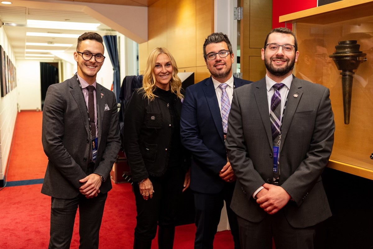 Chantal Machabée en compagnie des autres membres de l’équipe des communications du Canadien de Montréal. (Photo gracieuseté)