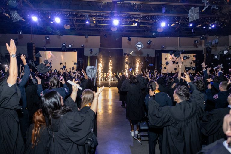 C’est dans une ambiance festive que plus de 875 finissant.e.s, ont défilé sur scène à la Place Bell pour recevoir un parchemin symbolique sous les applaudissements chaleureux de leurs proches, professeur.e.s et membres du personnel qui les ont accompagnés pendant leur passage au Collège.