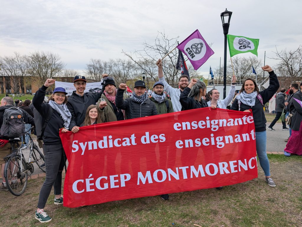 Dans le même ordre d’idées, les enseignant.e.s montmorenciens se sont joints à l’initiative intersyndicale Toujours debout contre l’austérité lors d’une marche au parc Lalancette le jeudi 1er mai en soirée.