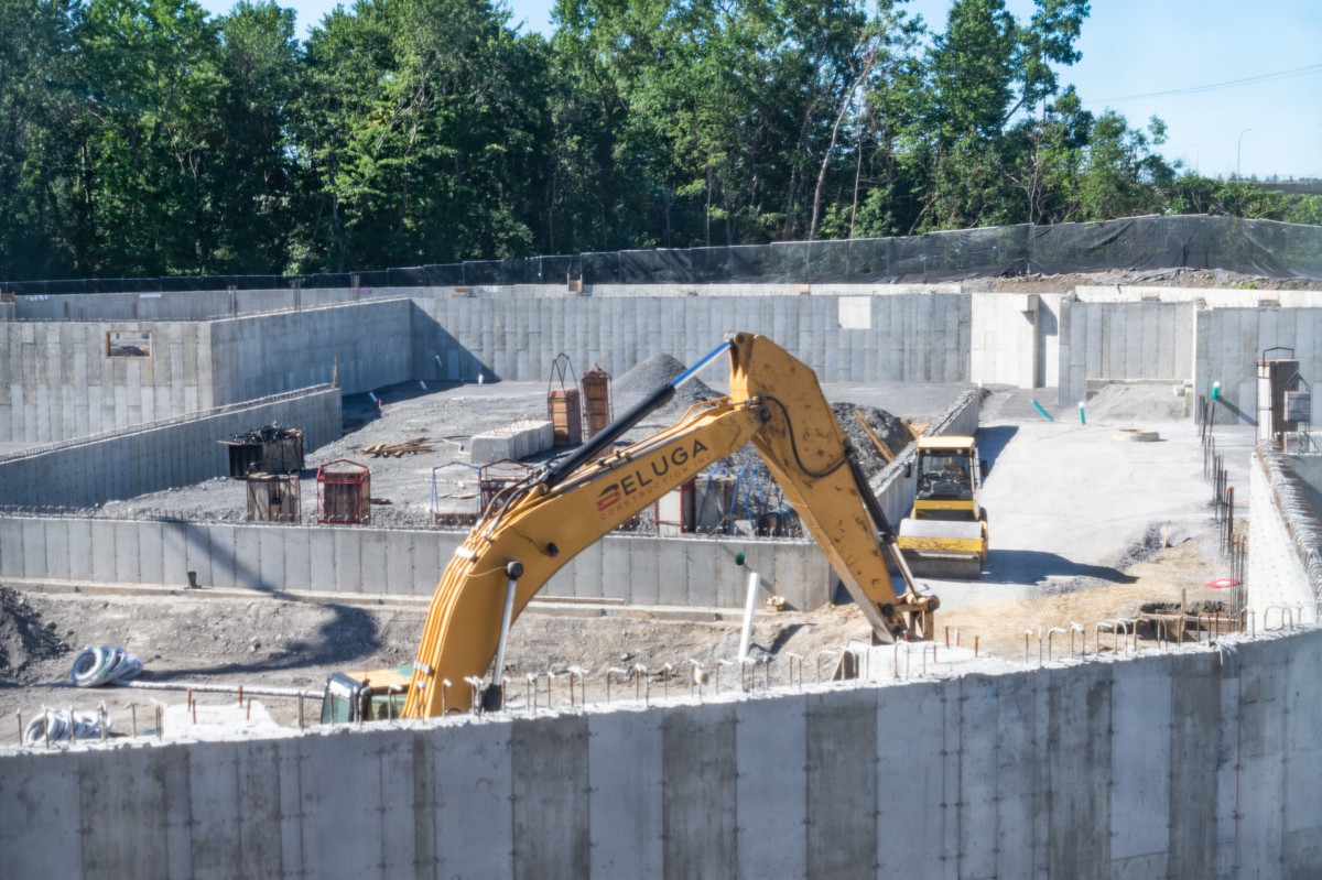 En cours depuis le printemps, les travaux d'excavation et de fondation du futur complexe aquatique sont sur le point d'être complétés sur le terrain avoisinant le Cosmodôme. (Photo 2M.Media – Martin Deland)
