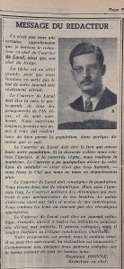 «Nous croyons que ‘‘Le Courrier’’ entre maintenant dans une ère nouvelle. Nous avons confiance que M. Dionne assurera au journal son caractère particulier, qui est de desservir la population de l’Ile Jésus en servant à la fois de voix à tous les organismes civiques, économiques, sociaux et religieux de l’Ile Jésus, et de lien entre ces groupes de notre grande famille Lavalloise», écrit José C. Limoges à la une de l’édition du 1er octobre 1953. Raymond Dionne, qui est également chef du tirage, y signera chaque semaine un éditorial en page 2.
