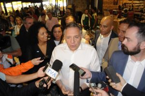 François Legault était au Marché 440 de Laval dimanche après-midi, en compagnie des six candidats de Laval, Adriana Dudas (Fabre), Mauro Barone (Mille-Îles), Alice Abou-Khalil (Chomedey), Christopher Skeete (Ste-Rose), Christine Mitton (Laval-des-Rapides) et Michel Reeves (Vimont).