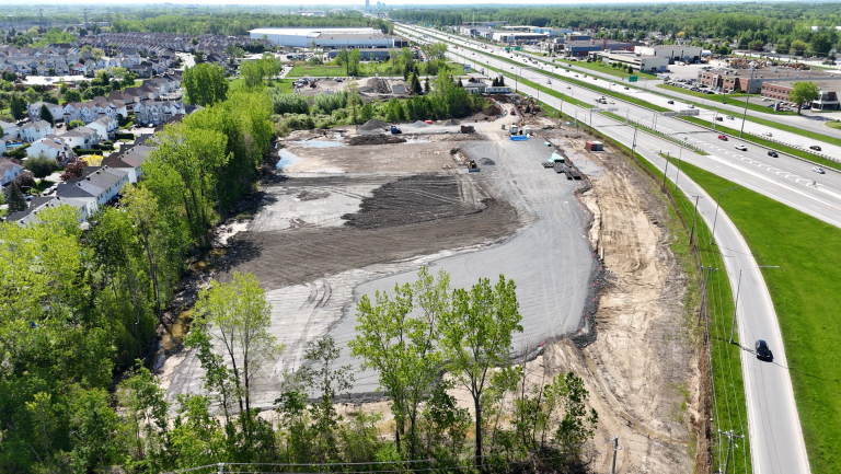 Il s’agit d’un investissement totalisant 40 M$, incluant l’acquisition du terrain dont la superficie correspond à cinq terrains de soccer bordant au sud la sortie pour le boulevard Dagenais.