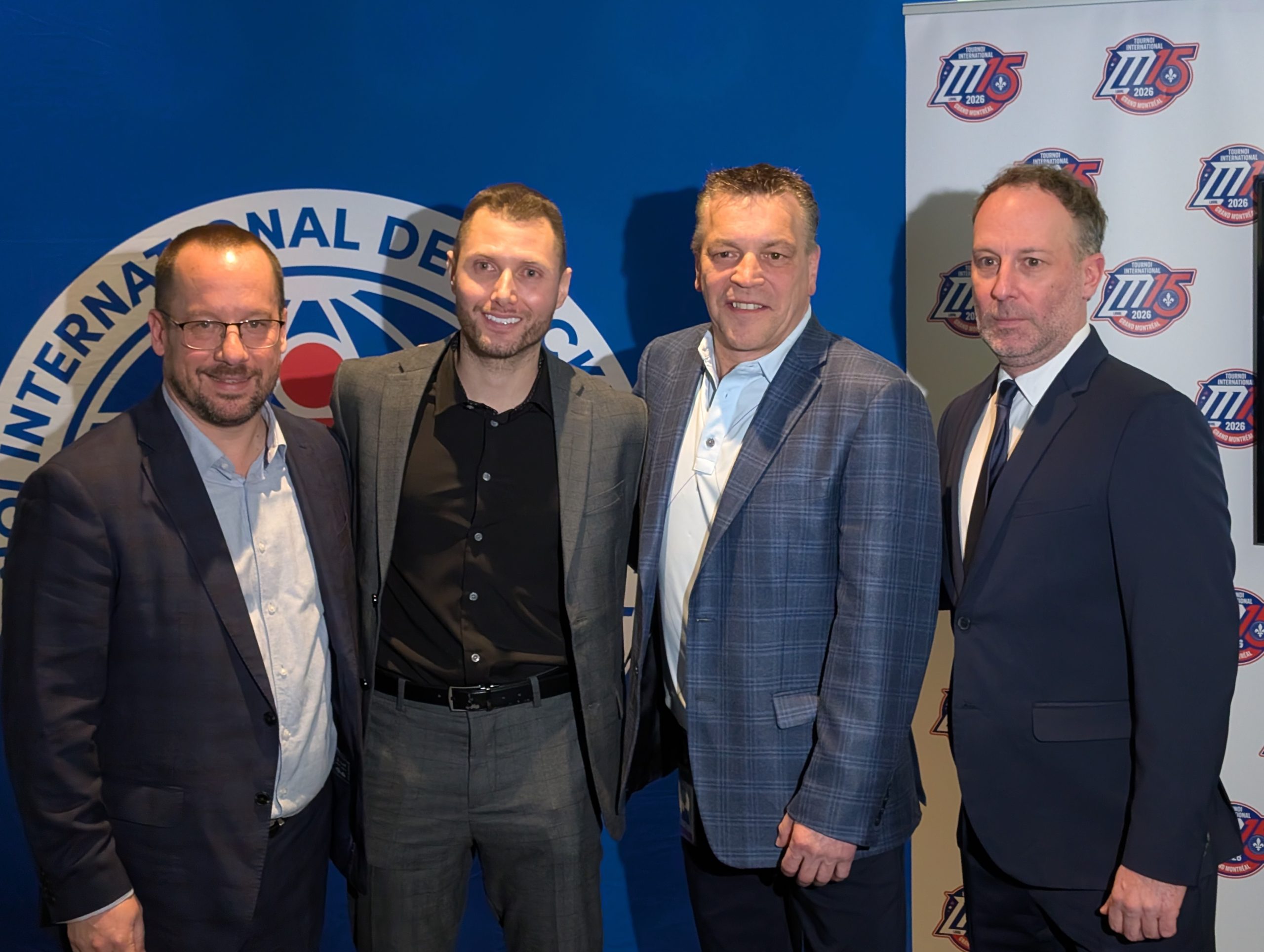 Martin Lavallée, président du conseil d’administration du tournoi M15, Frédéric Chabot, directeur général et fondateur du tournoi M15, Patrick Dom, directeur général du Tournoi international de hockey Pee-Wee de Québec, et Dominic Beaudry, directeur général adjoint du tournoi M15.