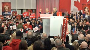 Les ministres sortants François-Philippe Champagne et Mélanie Joly, qui l’ont devancé sur la tribune, ont galvanisé la foule avant l’entrée en scène du 24e premier ministre de l’histoire du Canada.