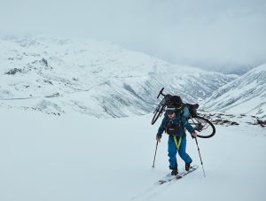 C’est dans les Alpes occidentales que se rendront ensuite les spectateurs en bikepacking avec deux adeptes de freeski qui réalisent leur rêve en pédalant de l’Allemagne jusqu’à la Méditerranée. Avec leurs skis attachés à leur vélo, c’est un périple de 1800 kilomètres sur 5 semaines, avec près de 35 000 mètres d’ascension auquel les gens assistent.