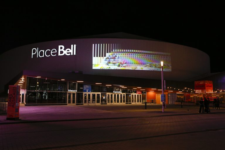 Home - Culture - Une œuvre numérique géante habille la Place Bell
