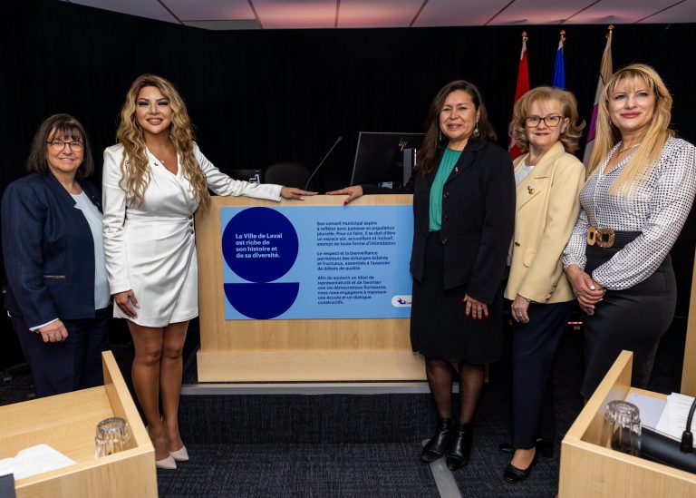 À l’occasion de la Journée internationale des droits des femmes, la Ville de Laval a apposé une plaque dans la salle du conseil municipal afin de réaffirmer son engagement en faveur d’un climat démocratique respectueux, inclusif et représentatif de l’ensemble de sa population.