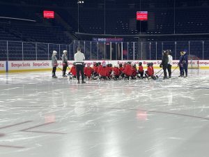 Il y avait des exercices sur la glace afin de travailler son coup de patin, ses passes ainsi que son contrôle de la rondelle.