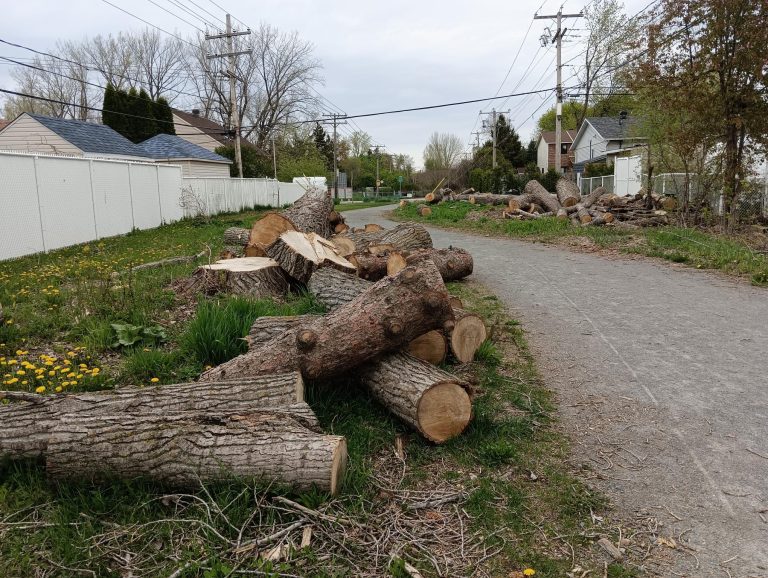 «C’était un petit oasis de paix avec les oiseaux et tout; là, c’est un cimetière d’arbres», déplore Françoise Faligant à la suite du passage des équipes d’Hydro-Québec – chargées de protéger le réseau de distribution – dans le sentier qu’elle avait l’habitude d’emprunter près de chez-elle.